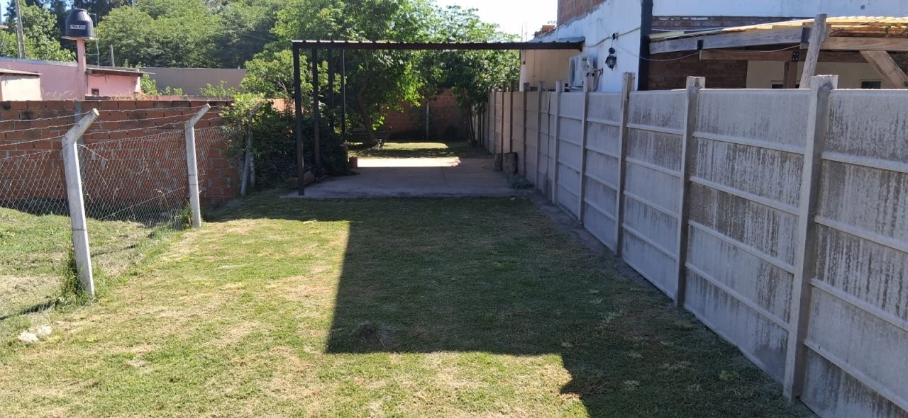 TIENE FRENTE CON PORTÓN Y PAREDÓN DE BLOQUES, RESTO CERRADO CON TEJIDO.